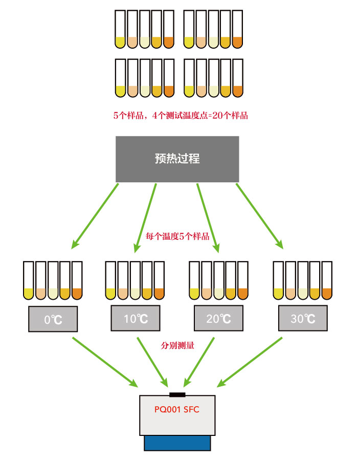 这个方法就是为每一个测试温度准备一个水浴,然后准备不同批的样品放置在不同的温度的水浴中,即每一个样品针对几个不同的温度必须准备几个相同的样品放置在不同的水浴中,第一个样品的第一个温度测定后、立即测定第一个样品的第二个温度、然后测定第一个样品的第三个温度,待第一个样品测试结束后,再开始测定第二个样品的第一个温度……依此类推。