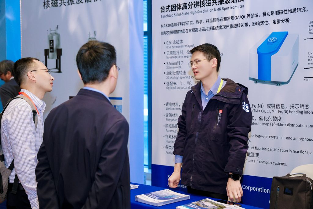 作为材料检测领域的深耕者,苏州纽迈分析携低场核磁共振技术在材料领域的应用解决方案及台式固体高分辨率核磁共振波谱仪MAS20精彩登场,凭借精准的检测能力和广泛的应用场景,成为展会焦点之一。