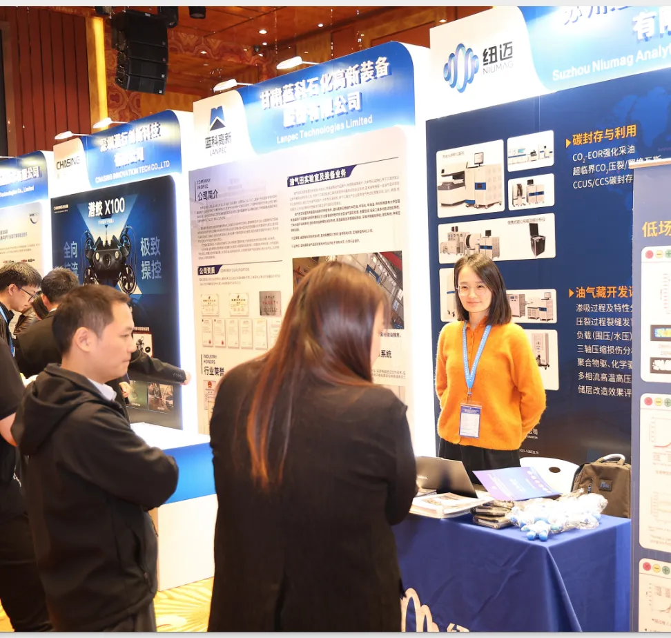 在这场汇聚全球顶尖智慧的高水平国际盛会上,苏州纽迈分析仪器股份有限公司(简称“苏州纽迈”)正以展台的形式,向世界展示低场核磁共振技术在能源前沿领域的创新力量。其展台聚焦能源领域的技术需求,展示了多系列仪器及应用方向,成为会场内学术交流的热点之一。
