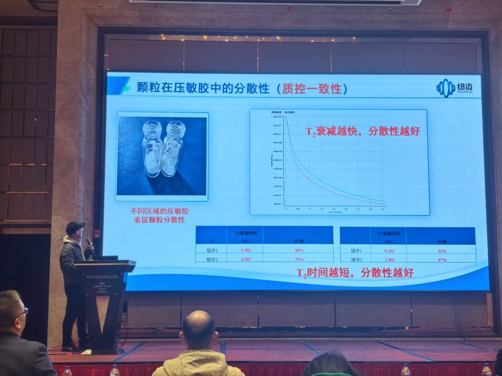 在为期两天的会议中,苏州纽迈的展台吸引了与会者的驻足交流。通过现场讲解与案例分享,纽迈向行业同仁展示了低场核磁共振技术在材料研发与质量控制(QC)中的独特价值,其“无损、快速、精准”的特点,为解决胶粘剂研发中的诸多痛点提供了全新的分析思路。