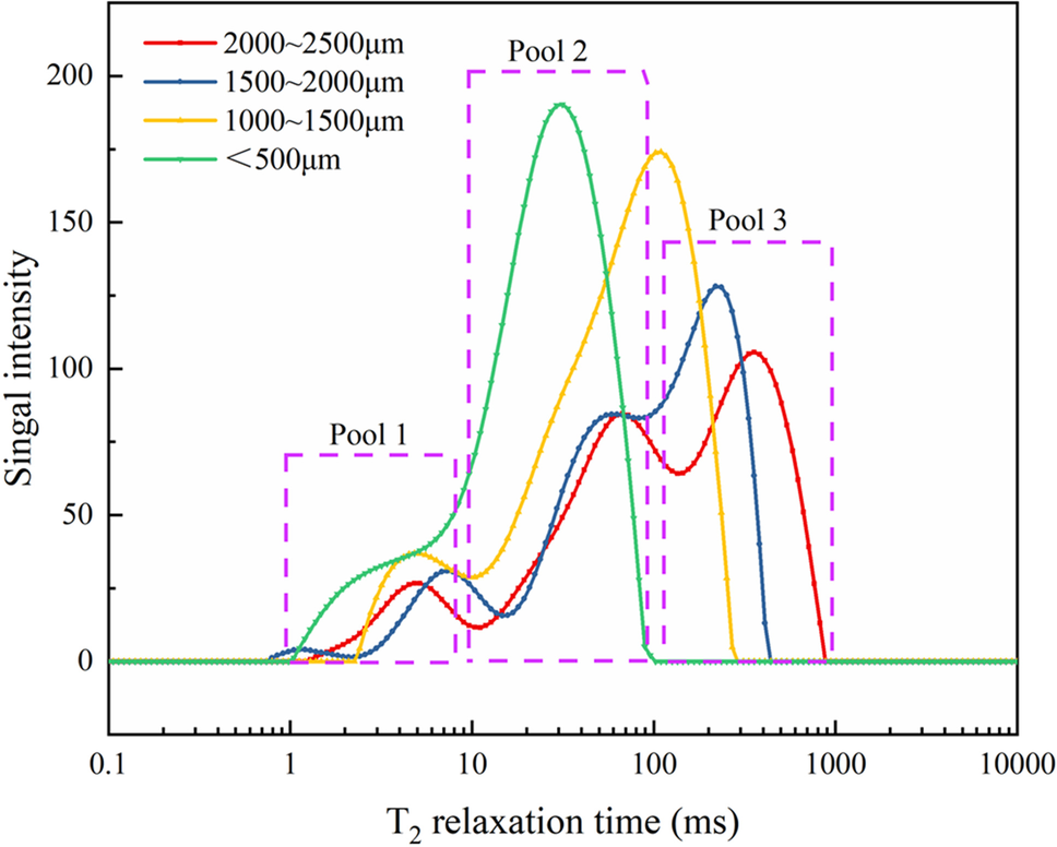 图2 (T2弛豫谱图) 与 图 3 (SEM 图像)