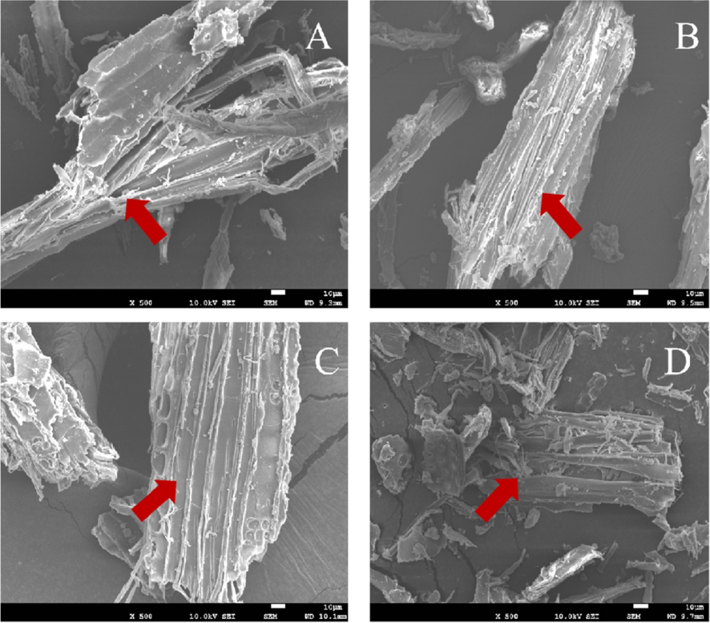 A23的增加反映了热水预处理对木材宏观结构的粉碎程度,颗粒粒径减小,暴露出更多的外表面积。