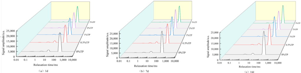TP的作用: 添加银耳多糖后,弛豫时间 T2​ 显著减小(向左移)。