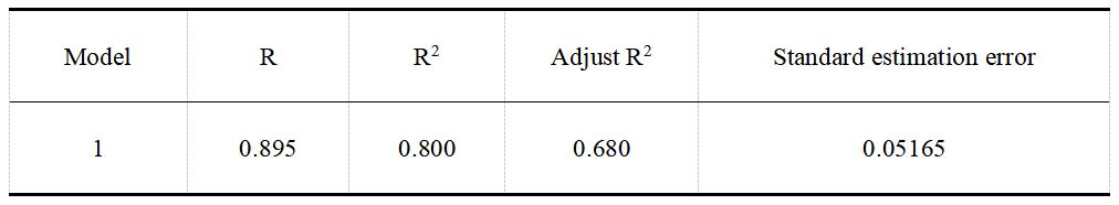 采用SPSS软件对多元线性回归模型进行拟合度和线性关系分析。SPSS生成的模型汇总表如表3所示。