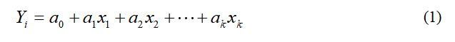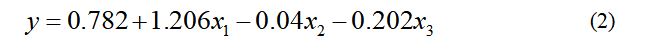基于正交实验结果,在两个假设下建立了多元线性回归模型:(1)其他因素对残余水饱和度的影响可以忽略不计,(2)实验室规模的岩心驱替实验代表了实际的二氧化碳地质封存项目。使用SPSS软件对孔隙度、压力、注入压差和残余水饱和度的数据进行分析,将后者设置为因变量,将前三个设置为自变量。因变量和自变量之间的一般关系由方程(1)定义。