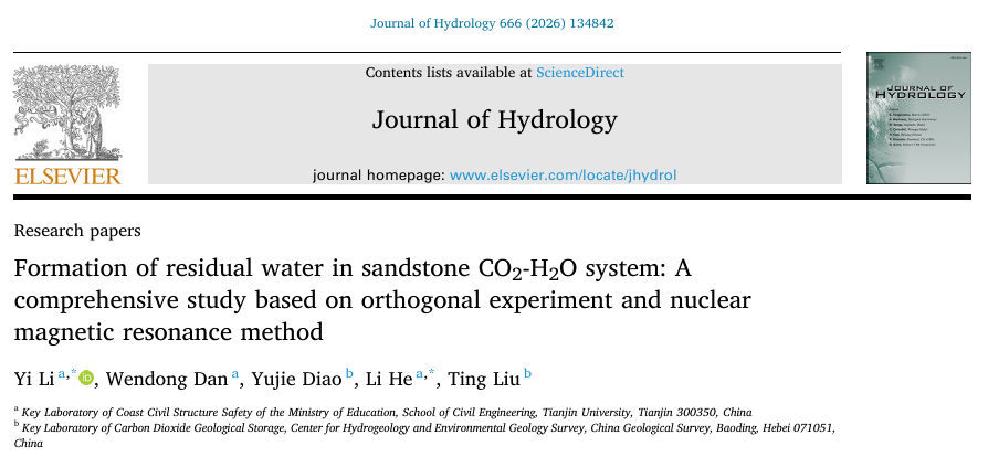 [1] Yi Li, Wendong Dan, Yujie Diao, Li He, Ting Liu. Formation of residual water in sandstone CO2-H2O system: A comprehensive study based on orthogonal experiment and nuclear magnetic resonance method[J]. Journal of Hydrology, 2025, 666, 134842.